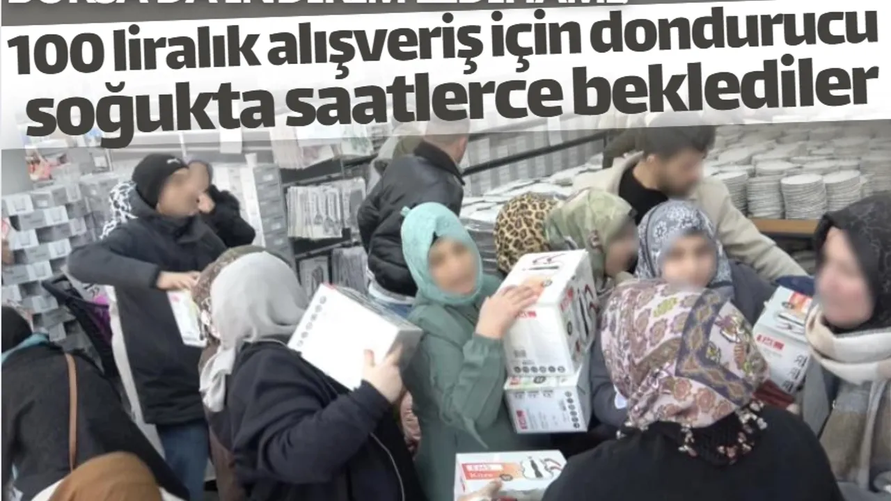 Yıldırım ilçesinde "100 TL'ye çaydanlık" vaadini duyan yüzlerce vatandaş, dondurucu soğukta saatlerce beklediği mağazanın kapıları açılınca adeta birbirini ezdi.