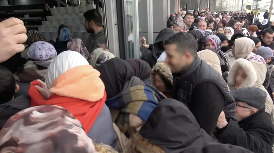 Sabahın erken saatlerinde mağaza önünde toplanan ve çoğunluğunu kadınların oluşturduğu yüzlerce kişilik kalabalık, dondurucu soğuğa rağmen saatlerce bekledi.