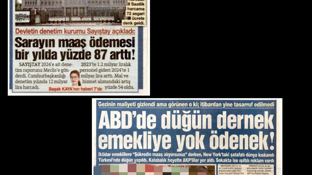 Sözcü'den Başak Kayanın haberine göre, Saray günlük 37.9 milyon TL, saatlik ise 1 milyon 580 bin TL harcıyor. CHP Mersin Milletvekili Gülcan Kış, ‘’Saray saatte 72 asgari ücreti harcarken, öğrencimize yemek yok, emekliye insanca yaşamak yok. Ama Saray’da şatafat çok, Millet aç, Saray tok’’ dedi ve şunları söyledi: Şimşek her gün vatandaşa ‘Sabredin, yakında düzelecek’ diyor, kendi bakanlığı 8 ayda milyarlar harcıyor. Kalan 4 ayda kalan para da yetmeyecek. Diyanet de vatandaşa sabır diyor, kendisi milyonluk araçlarla, şatafat içinde yaşıyor” diye konuştu.