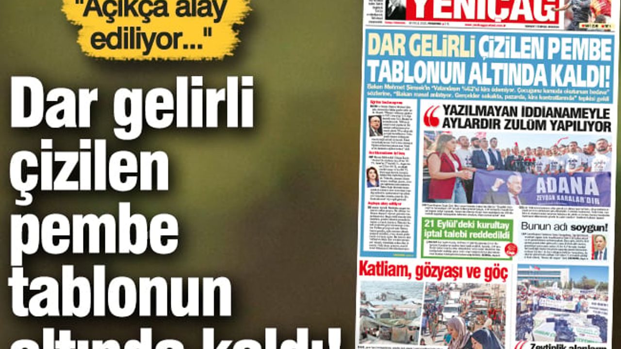 Yeniçağ Gazetesi bugün "Dar gelirli çizilen pembe tablonun altında kaldı!" başlığıyla çıktı.