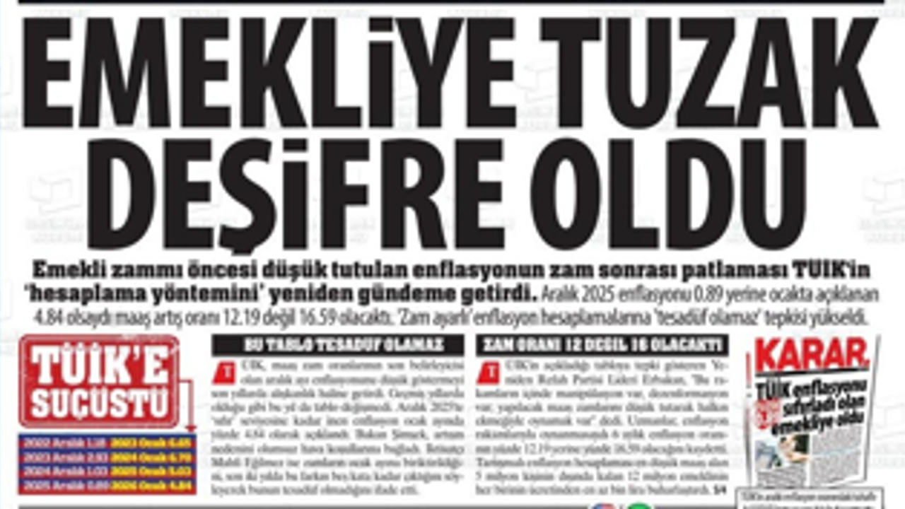 TÜİK, maaş zam oranlarının son belirleyicisi olan aralık ayı enflasyonunu düşük göstermeyi son yıllarda alışkanlık haline getirdi. Geçmiş yıllarda olduğu gibi bu yıl da tablo değişmedi. Aralık 2025'te ‘sıfır’ seviyesine kadar inen enflasyon ocak ayında yüzde 4.84 olarak açıklandı. Bakan Şimşek, artışın nedenini olumsuz hava koşullarına bağladı. İktisatçı Mahfi Eğilmez ise zamların ocak ayına biriktirildiğini, son iki yılda bu farkın beş kata kadar çıktığını söyleyerek bunun tesadüf olmadığını ifade etti.