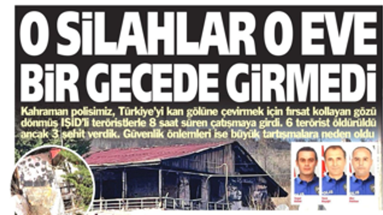 Karar'ın haberine göre, Yılbaşında eylem planladıkları belirlenen IŞİD üyelerine yönelik operasyonların Yalova’daki ayağında vahşet yaşandı. Saat 02.00 sularında takipteki terör örgütü hücresine baskına giden polise ateş açılması sonucu çatışma çıktı. Saatler süren çatışmada 3 polis şehit oldu, 8 polis ve bir bekçi de yaralandı. 6 teröristin ölü ele geçirildiği baskında 5 kişi gözaltına alındı. Baskının yapıldığı evin Yalova hücresinin ‘lojistik ofisi’ olduğu belirtildi.