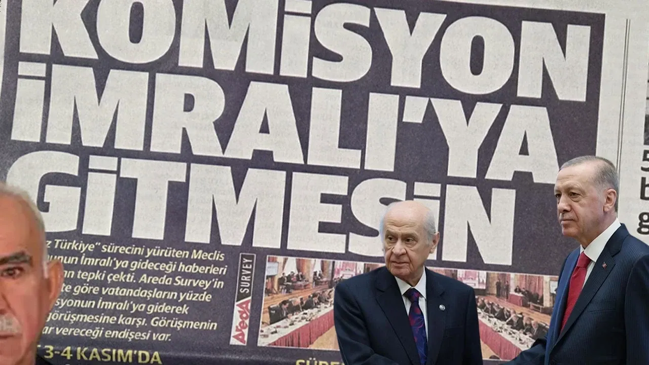 Areda Survey’in sürece dair araştırmasının paylaşıldığı haberde; anket sonucunda vatandaşların yüzde 76,7’sinin komisyonun İmralı’ya gitmesinin karşı olduğu aktarıldı. Bu haberin Bahçeli’nin çıkışının ardından manşete yansıması da dikkat çekti.