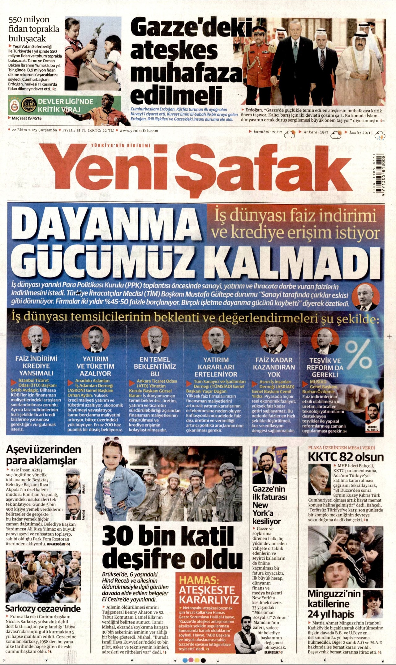İktidara yakın medyanın önde gelen gazetelerinden Yeni Şafak, faiz politikalarına yönelik eleştirisini bir kez daha manşetine taşıdı. Yarın açıklanacak faiz kararı öncesinde dikkat çekici bir çıkış yapan gazete, bugünkü manşetinde iş dünyasının “Dayanma gücümüz kalmadı” ifadesine yer verdi.
