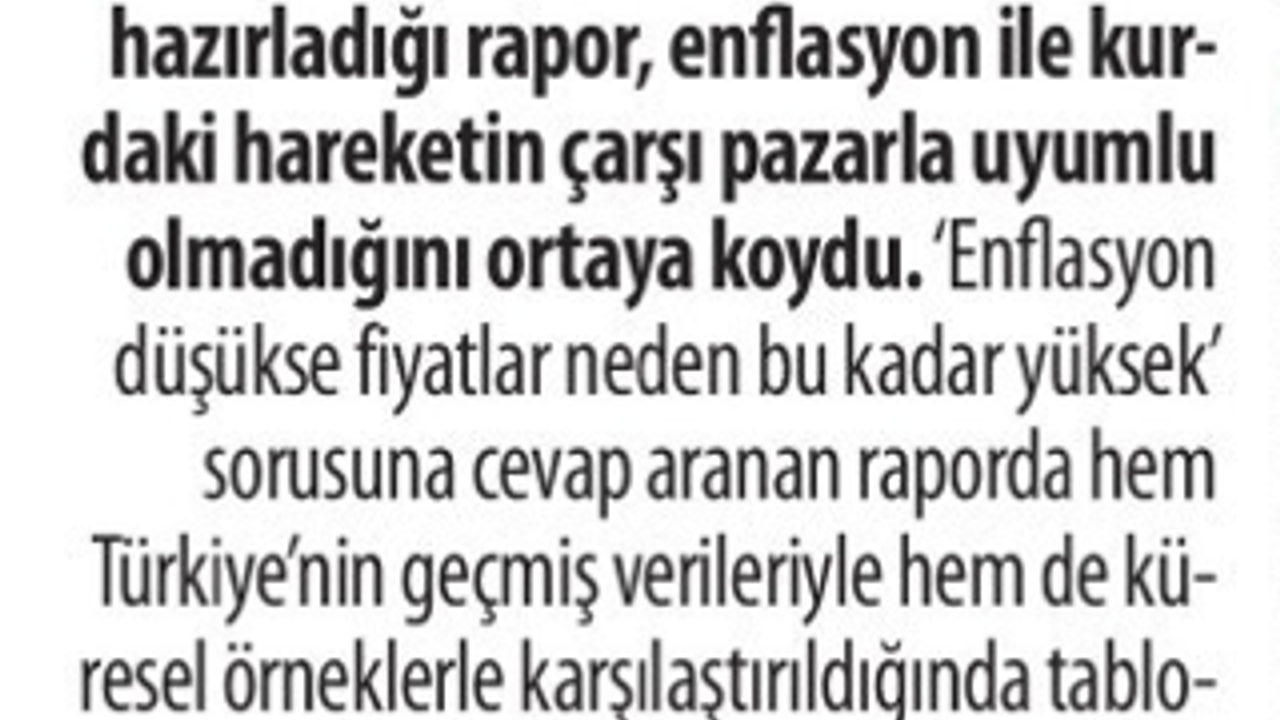 Karar'ın maşetinde yer alan habere göre, Türkiye’de enflasyonun olduğundan daha düşük gösterilmesi, buna karşın kira fiyatlarındaki artış ve esnafın girdi maliyetlerini hesap ederek fiyatlamayı yüksek tutması IMF’nin kafasını karıştırdı. Bu durumu sıra dışı olarak yorumlayan IMF, hazırladığı Türkiye raporunda fiyatlamanın enflasyon ve kur hareketlerinden bağımsız hareket etmemesi için yapısal reform önerisinde bulundu.