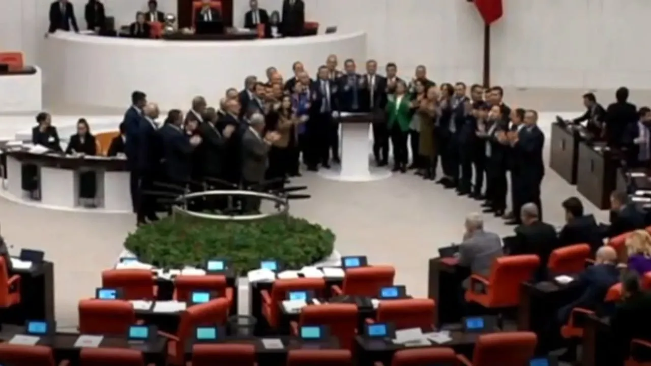 En düşük emekli aylığını 20 bin liraya çıkaran teklif görüşülürken, CHP’li vekillerin protestosu ve kürsüye getirilmek istenen mezar taşı ile tabut tartışması Genel Kurul’u karıştırdı.