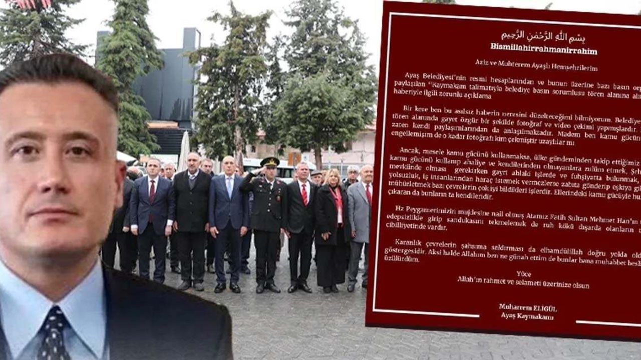 Ankara Ayaş’ta 23 Nisan Ulusal Egemenlik ve Çocuk Bayramı kutlamalarına belediye basın sorumlusunun alınmadığı iddiası tartışma yarattı. Tartışmaların ardından Ayaş Kaymakamı Muharrem Eligül’ün yaptığı açıklama sosyal medyada hayli yankı uyandırdı.