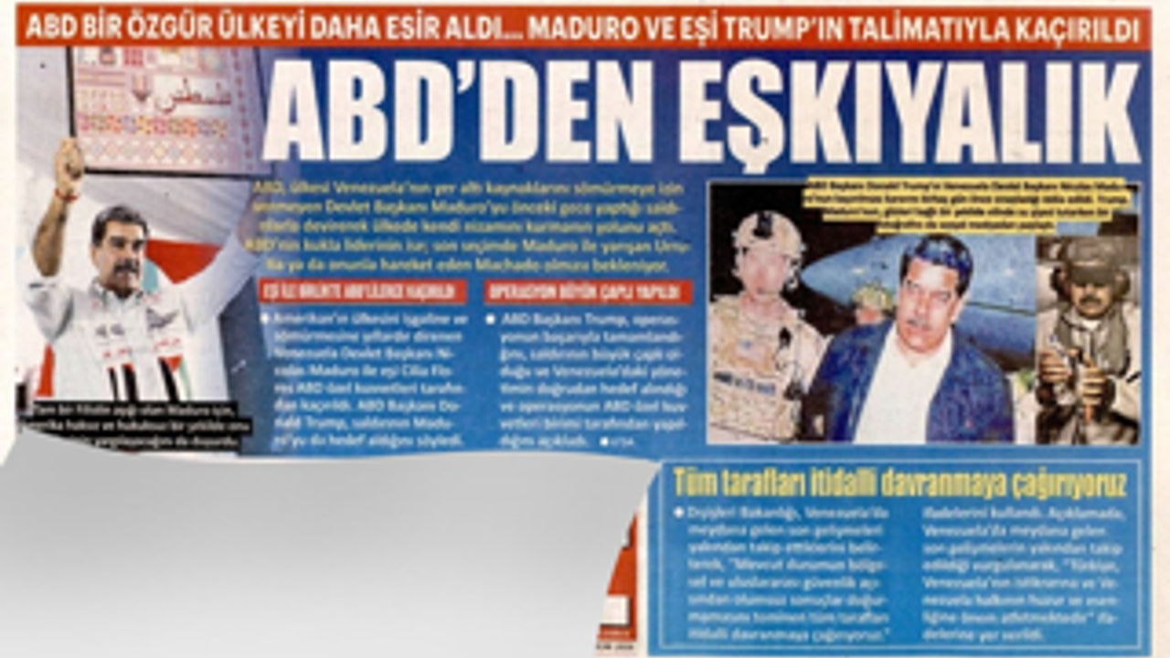 ABD ordusu Venezuela’nın stratejik askeri üslerini ve petrol tesislerini havadan vurdu. Trump, Devlet Başkanı Maduro’nun yakalanarak New York’a getirildiğini duyurdu. Amerikan haydutluğuna dünyanın tepkisi ise cılız kaldı.