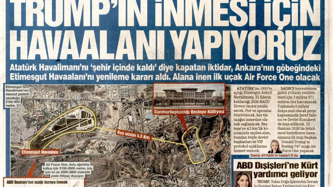 ABD Başkanı Trump ile 32 ülkenin devlet başkanları 7-8 Temmuz 2026’da Ankara’daki NATO Zirvesi’nde buluşacak. Atatürk tarafından 1935’te açılan ve bugüne kadar askeri amaçla kullanılan Etimesgut Havalimanı da bu toplantı için hazırlanıyor. Zirveye ‘Air Force One’ ile gelecek Trump ile diğer başkanların uçakları Etimesgut Havalimanına inecek. Ancak mevcut pistin uzunluğu 2 bin 800 metre. Trump’ın uçağı ise iniş için daha uzun piste ihtiyaç duyuyor.